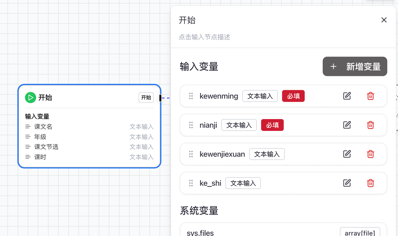 编辑开始节点:输入变量