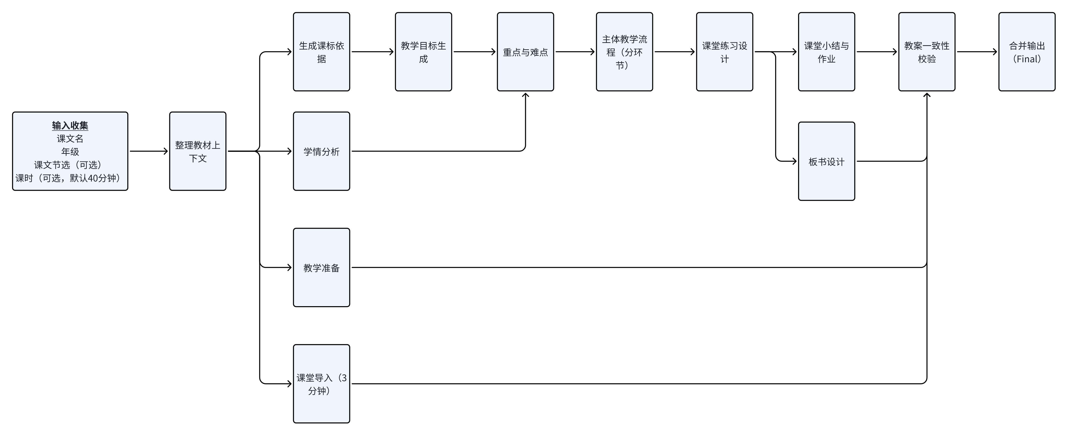 只要工作流搭好,每次换一篇课文,就能 1 分钟生成一份教案。